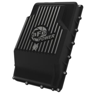 aFe POWER Pro Series deep transmission pan brings performance engineering to the protection of your trucks transmission. This transmission pan has additional capacity for 2 more quarts over stock at the factory line, a magnetic drain plug and a 1/8″ NPT port for your temperature sensor. Built-in internal and external fins transfer heat from the fluid to the outside air for maximum cooling. This transmission pan is constructed out of durable die-cast A356 aluminum with reinforced ribs and a wrinkle black powder-coating for maximum strength and styling.
